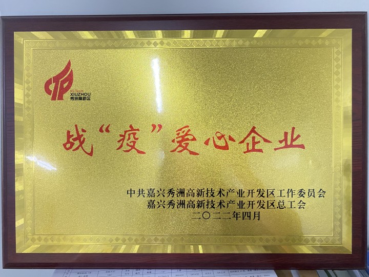 嘉興秀洲國家高新區授予“戰‘疫’愛心企業”稱號